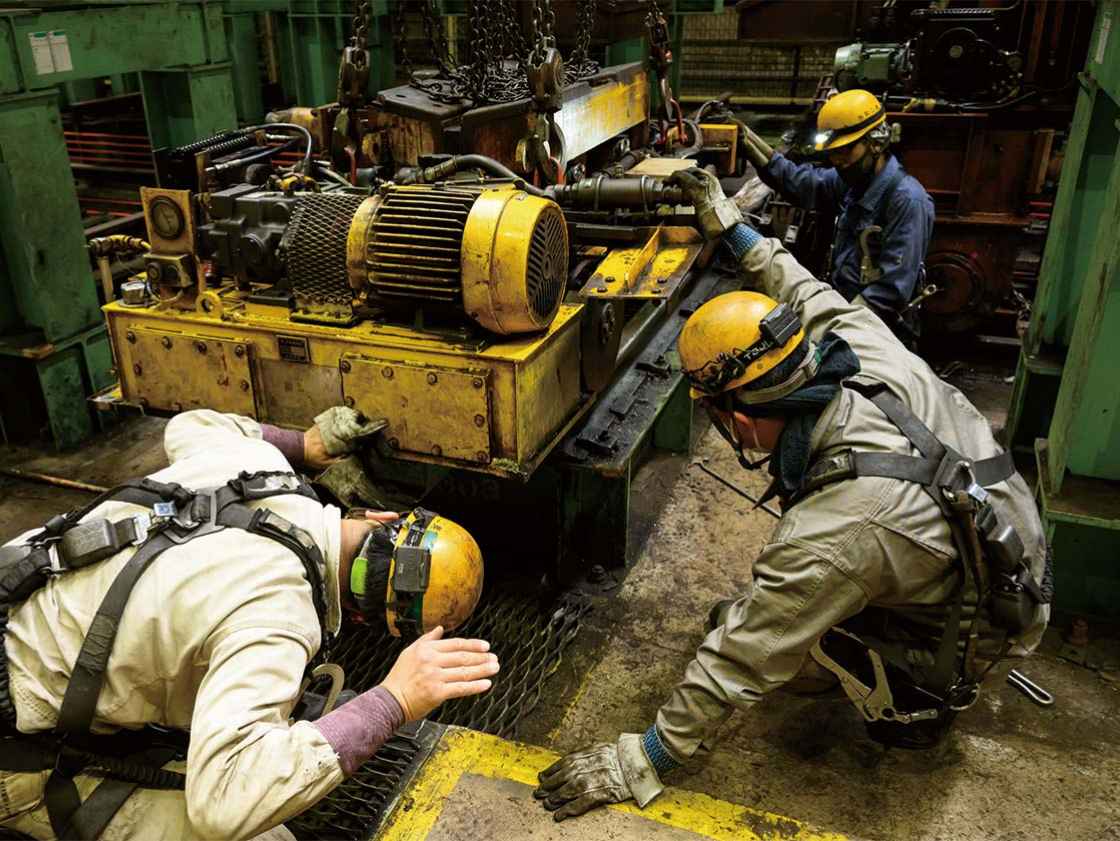 長年の経験をもとにプラントの安定稼働を守る。 製鉄所や工場内の機械や設備の安定操業に必要な日常点検、整備、修理、部品交換等を行い、長年培った経験、実績、高い技術力で常に安定したプラントの稼働を実現します。
